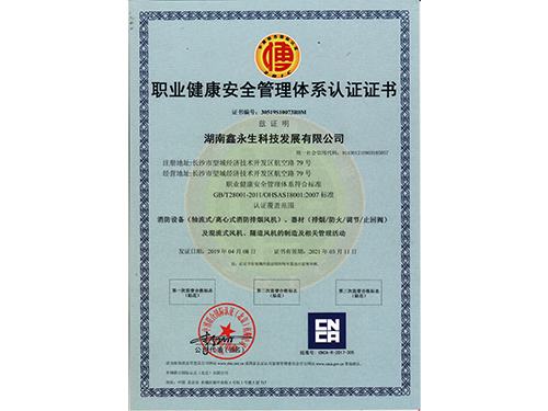 • 職業健康安全認證體系證書